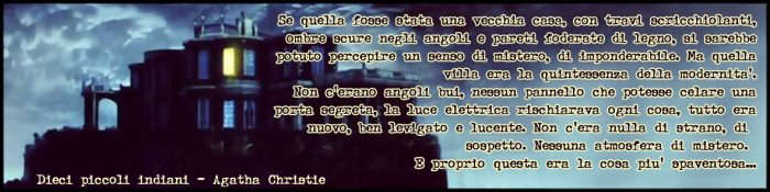 Ingegnoso, a tratti decisamente inquietante, di una genialità spietata, la lettura prosegue con trepidazione fino all’ultima parola. Ho giocato a cercare l’assassino, e non ci sono riuscita. Si legge con la consapevolezza che il colpevole può essere ciascuno di loro, ma anche che non sembra possibile che l’assassino sia uno degli ospiti. E allora… chi è?
